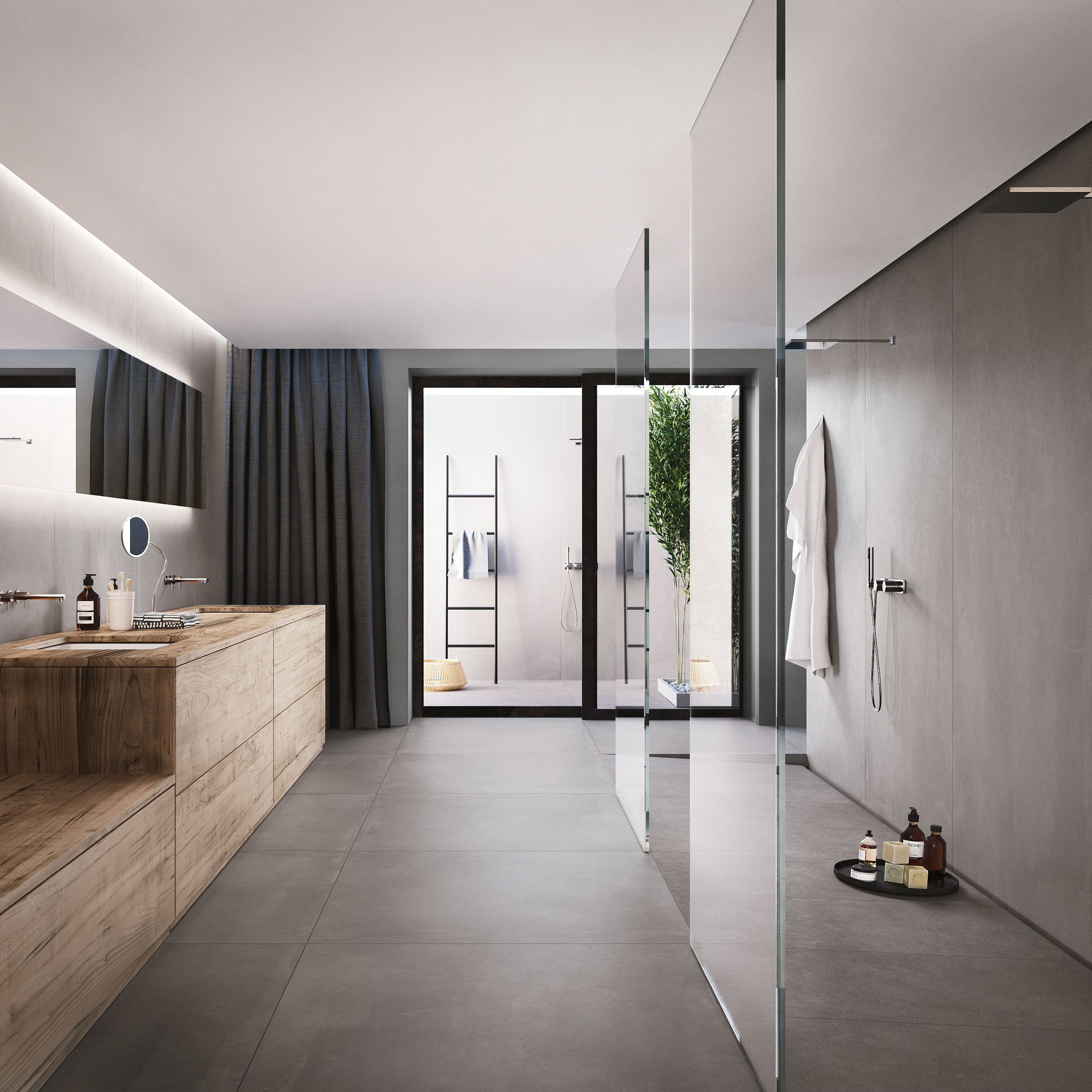 Pienikin ripaus luonnonvaloa tuo kylpyhuoneeseen aivan omanlaistaan harmonista tunnelmaa. Lattia- ja seinälaatat: LPC Stage