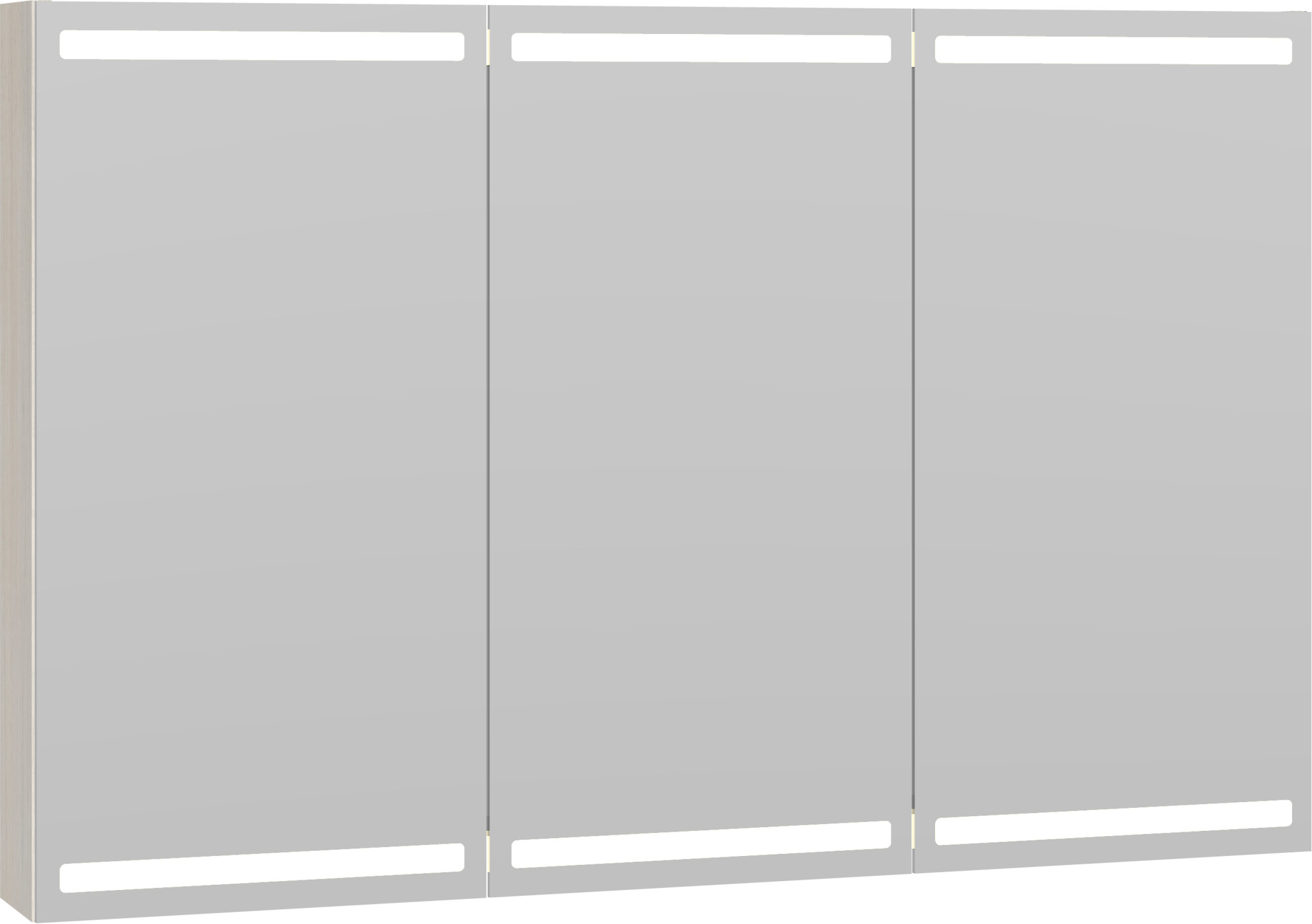 Dansani Calidris Parallel valaisinpeilikaappi 120x80x15 cm valkoinen tammi 3 ovea ilman vetimiä päävalaistus valaistuksenohjaus pistorasia oikealla