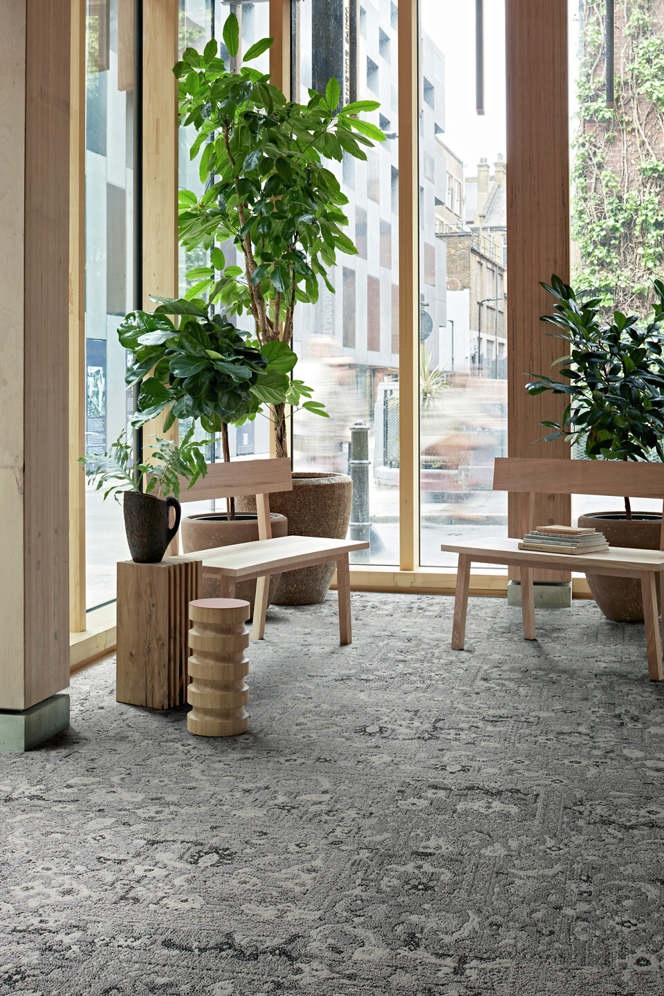Past Forward on Interfacen 50-vuotisjuhlakokoelma tekstiililaattoja, joissa yhdistyvät rohkeat nostalgiset kuviot sekä retrovärit. Entisaikojen ikoniset mattokuosit on päivitetty nykypäivään, jotta ne toimivat irtoasennettavissa tekstiililaatoissa. Kuoseissa näkyy vaikutteita mm. Lähi-Idän perinnematoista, Art Nouveau -kuvioista, rokokoo-ornamenteista, 1950-luvun klassikkokuoseista sekä 1990 luvun geometrisista kuvioista. Sarja on suunniteltu erityisesti hotelleihin ja erilaisiin aulatiloihin, esimerkiksi aluematoiksi istuskelualueille. Tekstiililaatoista koottu aluematto on tarvittaessa helposti muunneltavissa ja huollettavissa. Muhkeanukkainen tekstiililaatta parantaa aulatilojen akustiikkaa vaimentamalla askelääniä ja hälyääniä. Voit yhdistellä sarjan tekstiililaattoja muiden saman valmistajan tekstiililaattojen ja LVT-lattioiden kanssa ilman listoja. Tekstiililaattojen lanka on 100 % kierrätettyä polyamidia ja CQuest™Bio -biokomposiittipohja sisältää hiilinegatiivista biopohjaista ja kierrätettyä materiaalia. Tekstiililaattojen valmistuksesta aiheutuva hiilijalanjälki on erityisen pieni.
