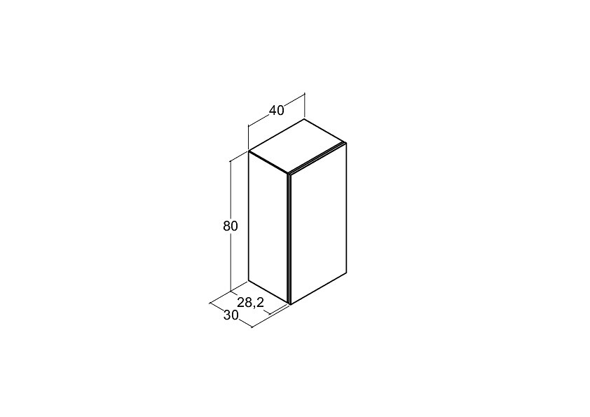 Dansani Calidris pieni kaappi 40x80x30 cm valkoinen tammi 1 ovi ilman vetimiä saranat vasemmalla
