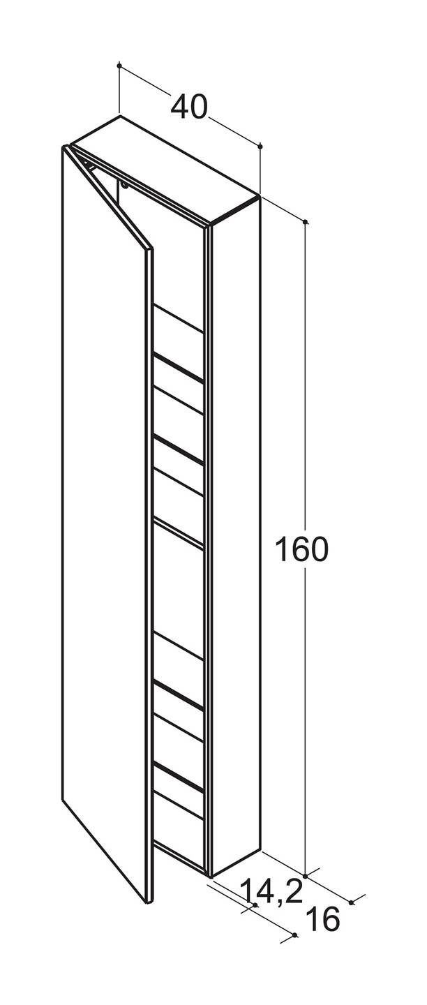 Dansani Calidris korkea kaappi 40x160x16 cm valkoinen tammi 1 ovi ilman vetimiä saranat vasemmalla