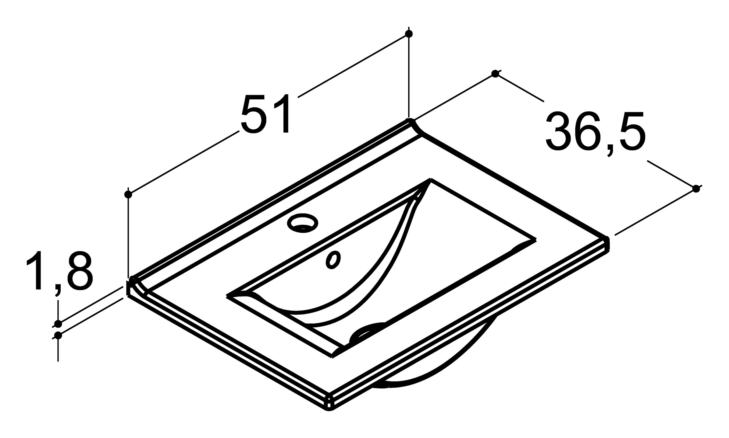 Dansani Pro Good/Better Mini Amber vanity washbasin 51x36,5x2,8 cm white porcelain tap hole overflow