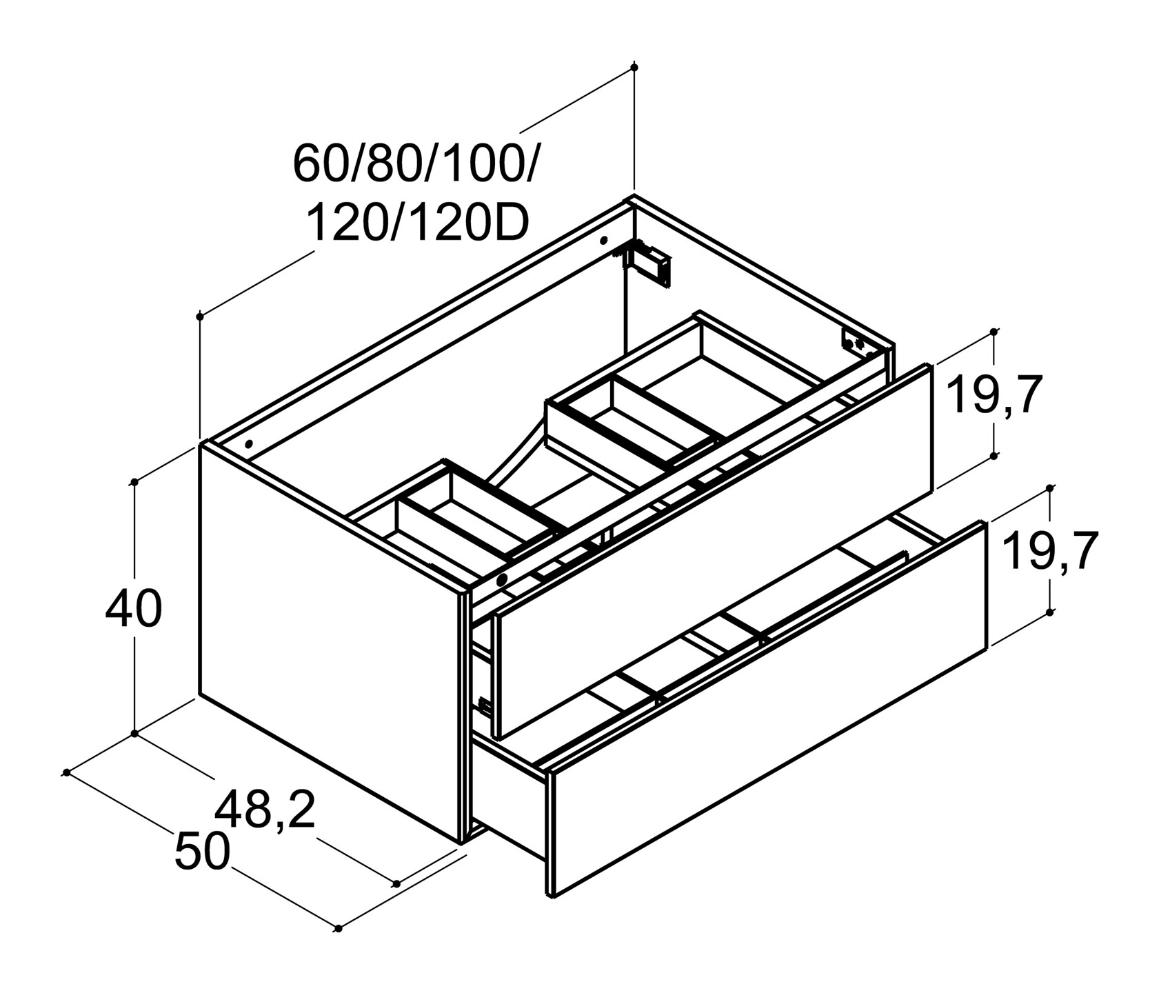 Dansani Calidris allaskaappi 120x40x50 cm valinnainen väri puuviilu 2 ltk ilman vetimiä kaksoisaltaalle