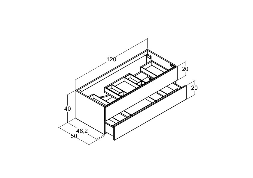 Dansani Calidris allaskaappi 120x40x50 cm harmaa tammi 2 ltk ilman vetimiä kaksoisaltaalle
