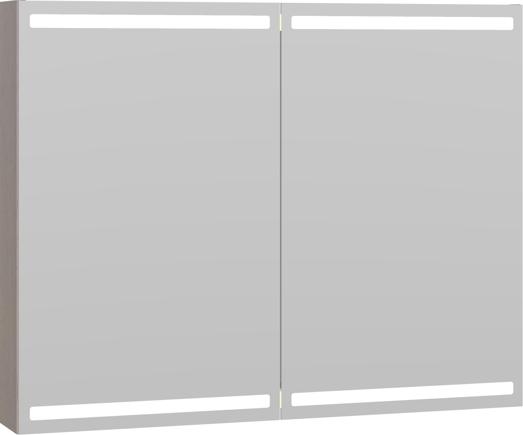 Dansani Calidris Parallel valaisinpeilikaappi 100x80x15 cm harmaa tammi 2 ovea ilman vetimiä päävalaistus valaistuksenohjaus pistorasia oikealla