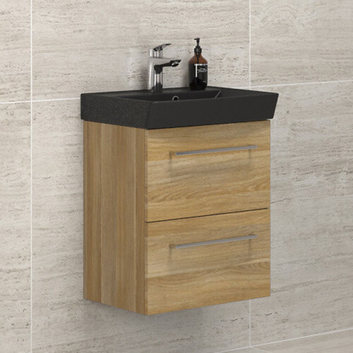 Dansani Mido kalustesetti Cappella 52x66,4x40,5 cm matta-antrasiitti+lämmin tammi 2 ltk sisältää vetimet lyhyt