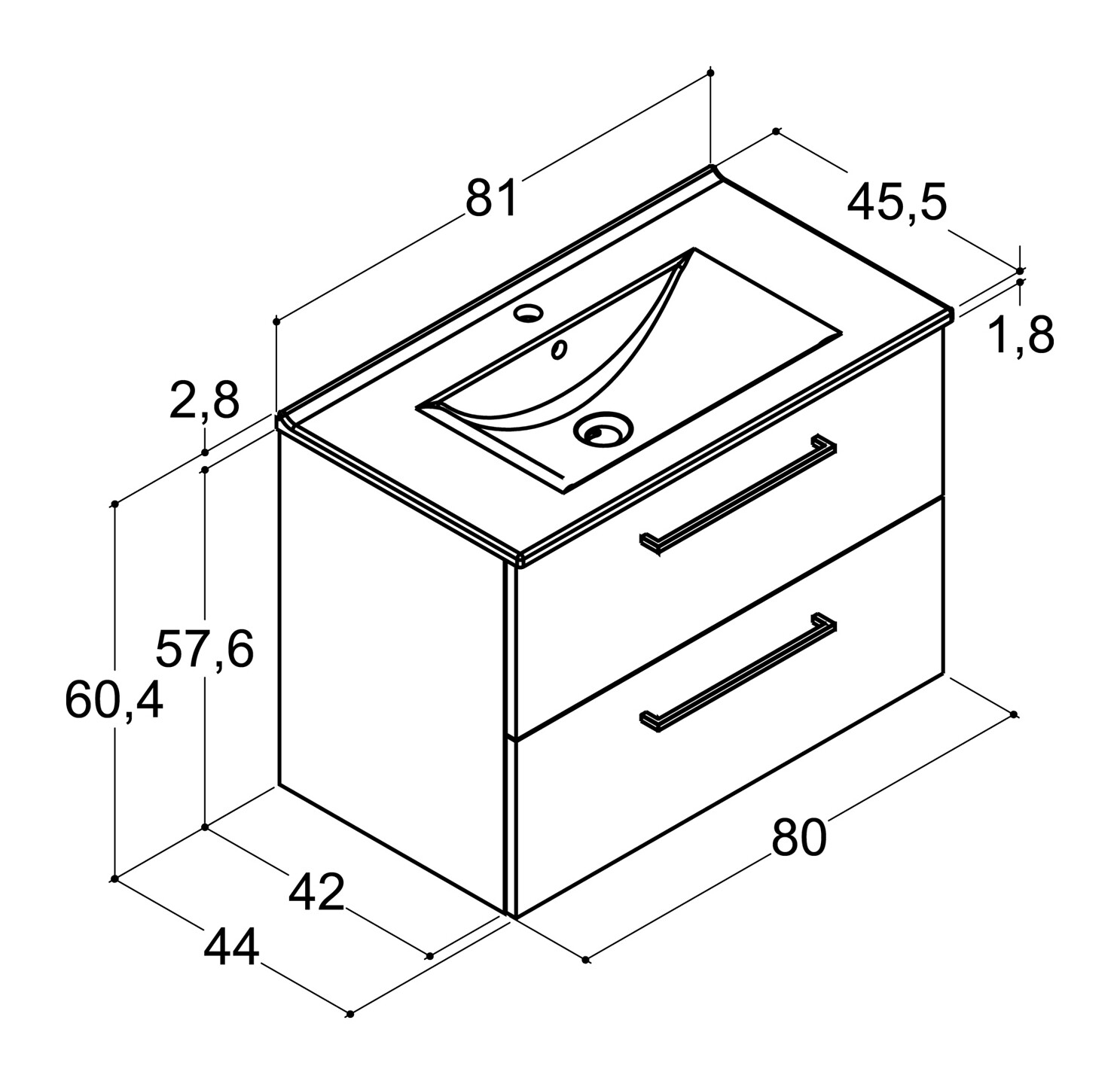 Dansani Mido kalustesetti Amber 81x60,4x45,5 cm mattaharmaa 2 ltk sisältää vetimet