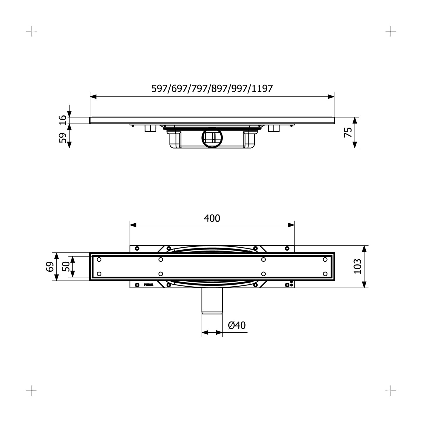 Purus line drain frame 997x75 mm