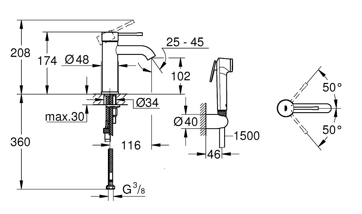 GROHE Essence S basin mixer with bidet chrome