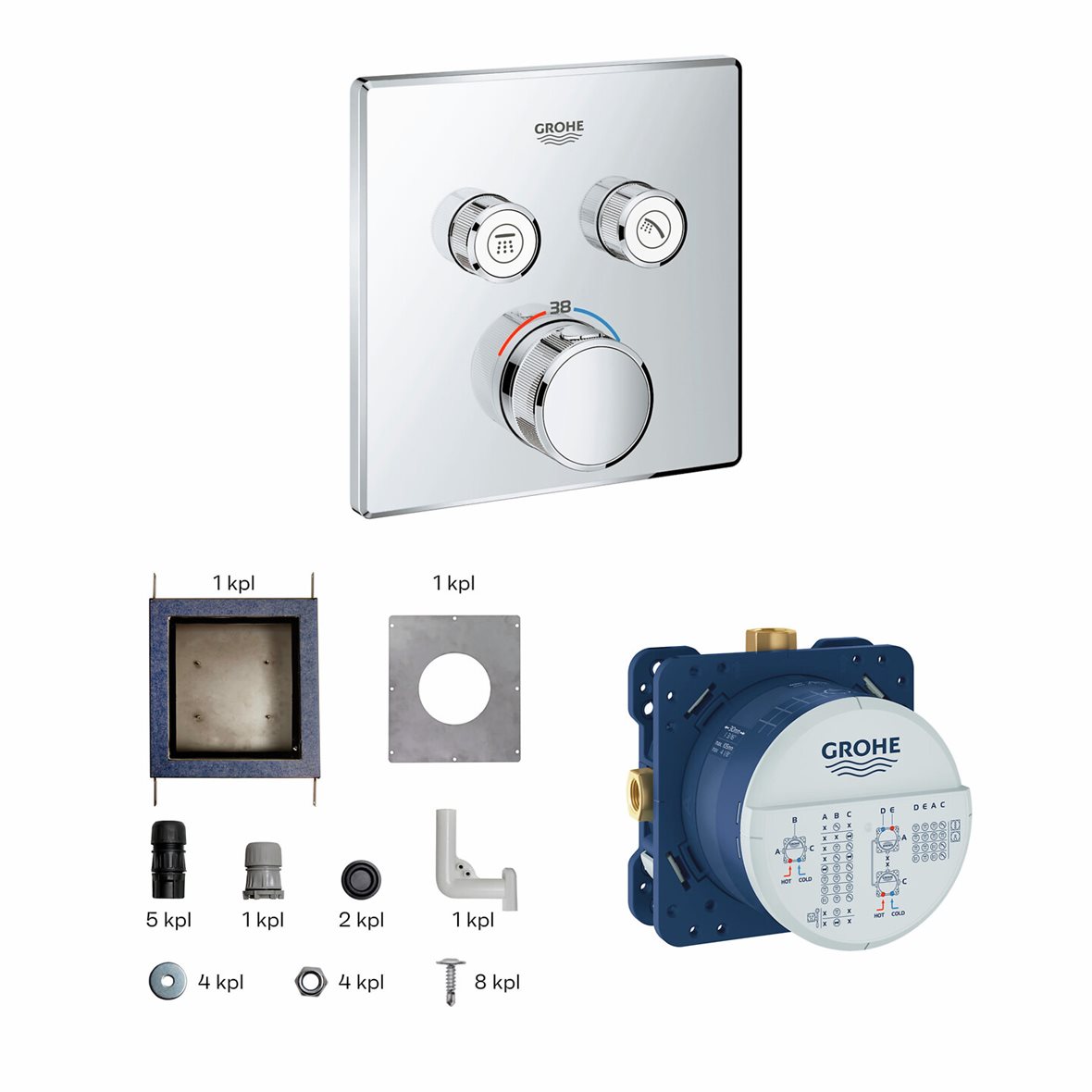 GROHE Grohtherm SmartControl surface part for thermostatic mixer package square chrome 2 functions