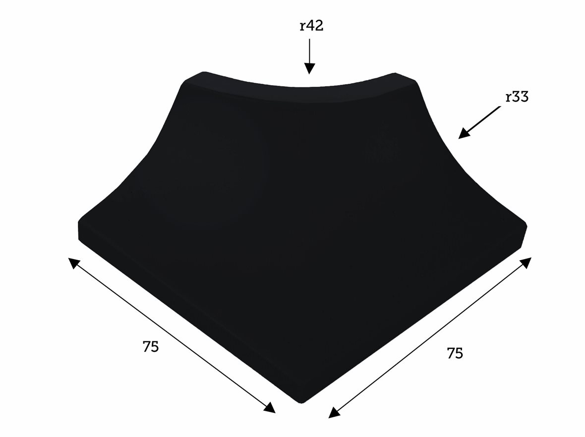 LPC Pools extruded glazed porcelain corner piece, external 7,5X7,5 Negro smooth matt antibacterial