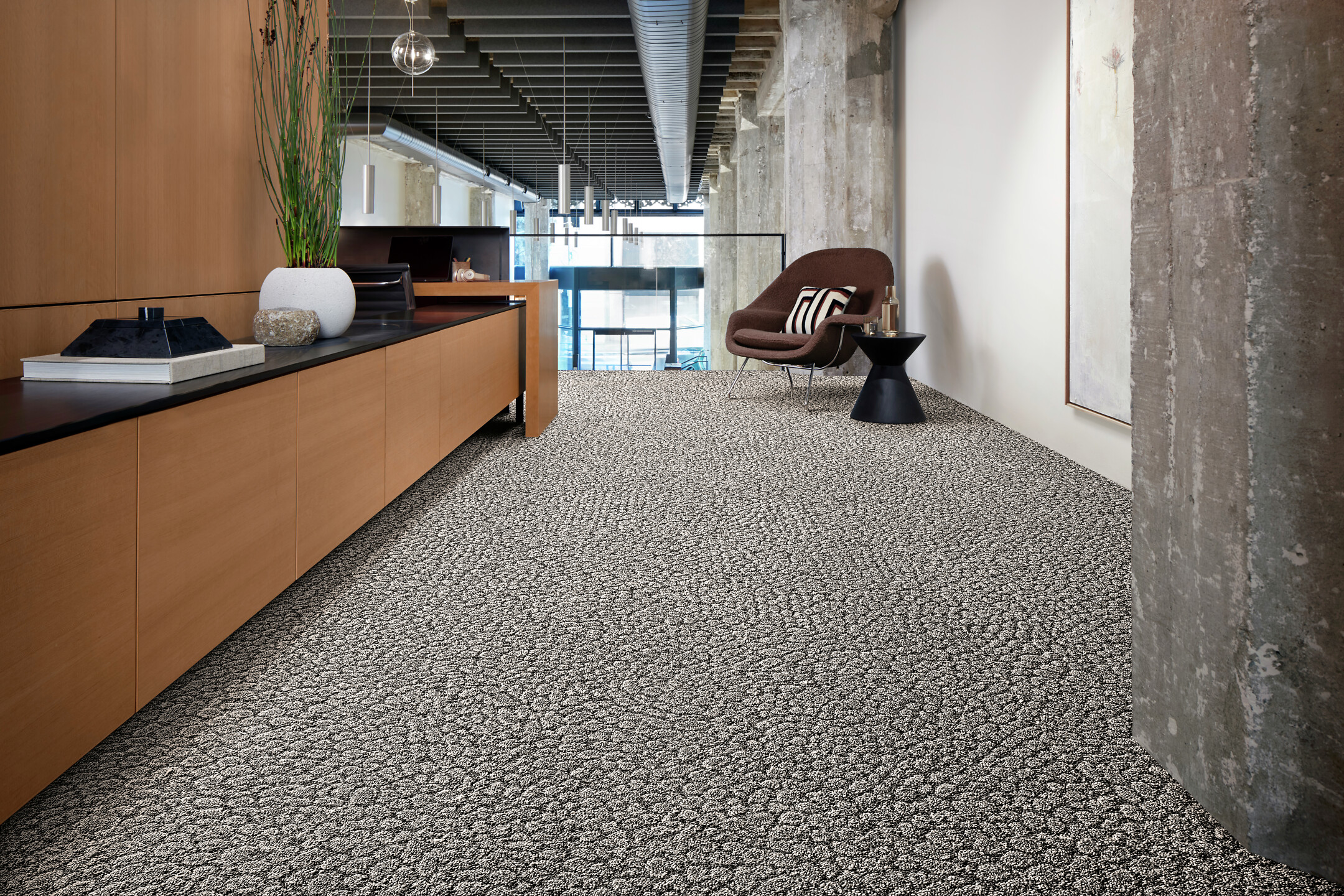 Luonnonvoimaa syleilevä Interface Etched & Threaded on luotu tiloihin, joissa voi keskittyä ja rauhoittua – tai antaa ajatuksen lentää! Tekstiililaatoissa ja -lankuissa näkyy ajaton tekstiiliperinne, voimakkaat tekstuurit ja luonnonkivien geometria. Lämpimät ja viileät neutraalit sävyt sopivat skandinaaviseen sisustukseen ihanteellisesti. Tekstiililaattojen lanka on 100 % kierrätettyä polyamidia ja CQuest™Bio -biokomposiittipohja sisältää hiilinegatiivista biopohjaista ja kierrätettyä materiaalia. Akustiikkaa parantavat tekstiililaatat voidaan asentaa TacTiles®-tarroilla helposti ja nopeasti ilman liimaa.