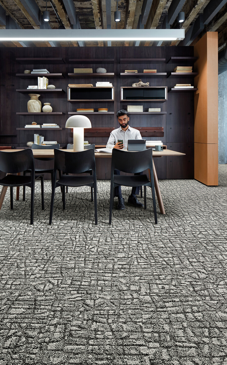 Luonnonvoimaa syleilevä Interface Etched & Threaded on luotu tiloihin, joissa voi keskittyä ja rauhoittua – tai antaa ajatuksen lentää! Tekstiililaatoissa ja -lankuissa näkyy ajaton tekstiiliperinne, voimakkaat tekstuurit ja luonnonkivien geometria. Lämpimät ja viileät neutraalit sävyt sopivat skandinaaviseen sisustukseen ihanteellisesti. Tekstiililaattojen lanka on 100 % kierrätettyä polyamidia ja CQuest™Bio -biokomposiittipohja sisältää hiilinegatiivista biopohjaista ja kierrätettyä materiaalia. Akustiikkaa parantavat tekstiililaatat voidaan asentaa TacTiles®-tarroilla helposti ja nopeasti ilman liimaa.
