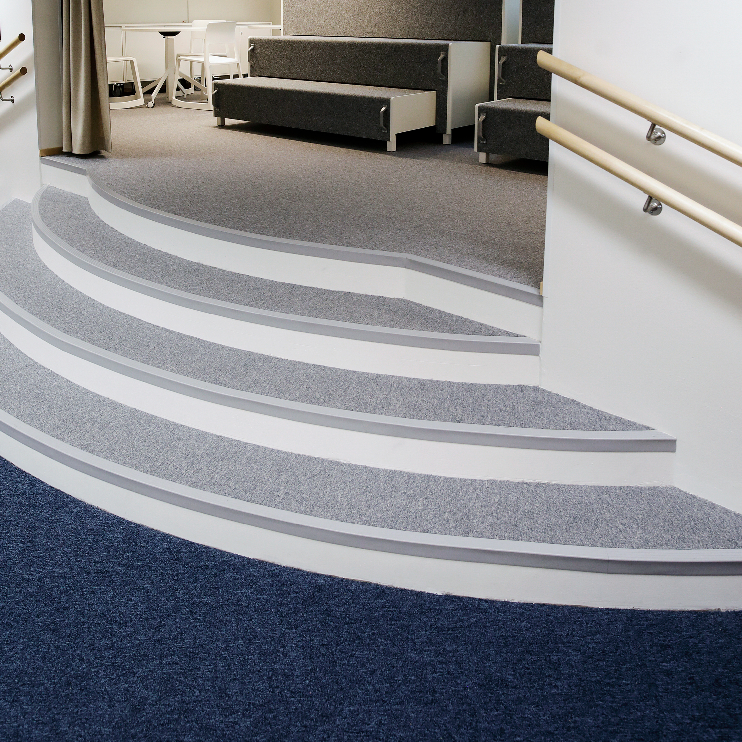 Perinteisten luokkien sijaan koulussa on ilmiöoppimisen mahdollistavia suuria monitoimitiloja, jotka voidaan jakaa väliseinillä sekä verhoilla pienemmiksi huoneiksi ja suojaisiksi nurkkauksiksi. Akustisiin ratkaisuihin on kiinnitetty erityistä huomiota, ja niinpä pintamateriaaliksi valittiin Interfacen ekologiset, sisäilmaa parantavat ja hälyääniä tehokkaasti vaimentavat Heuga 580 -tekstiililaatat. Tekstiililaattojen väri vaihtelee tiloittain, jolloin eri alueiden hahmottaminen on helpompaa.