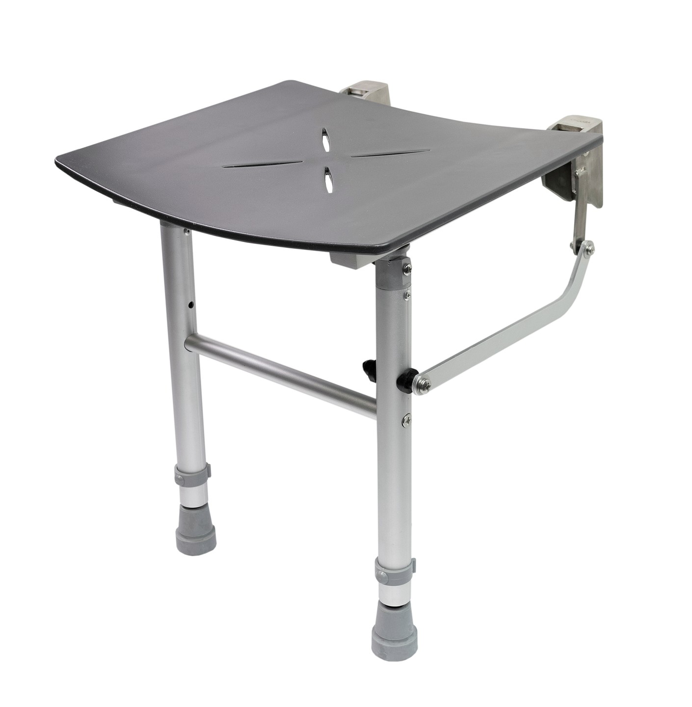 JMS-Tuote Suihkuistuin kevyt, kääntyvillä tukijaloilla, harmaa/valkoinen penkki