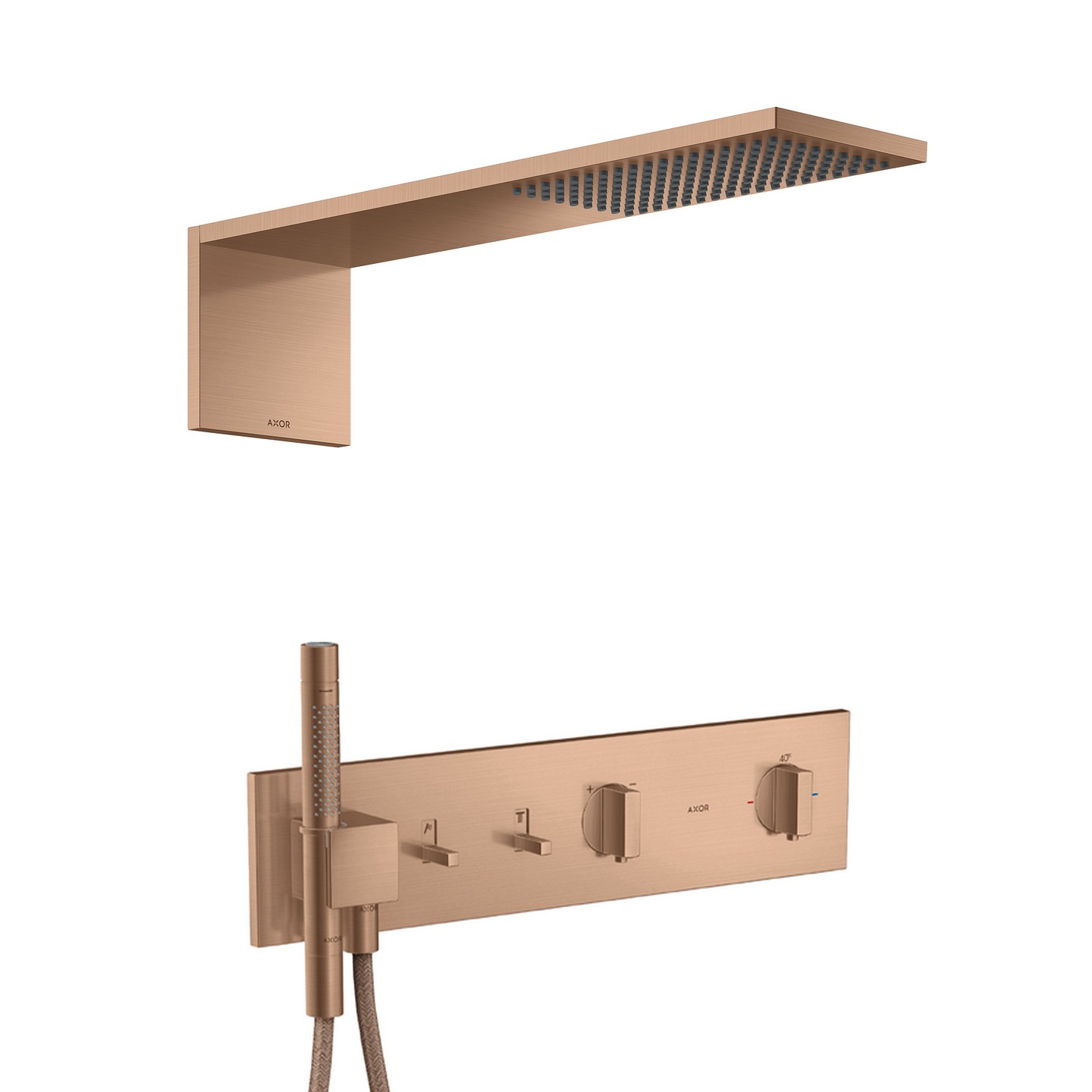 AXOR ShowerComposition piiloasennettava sadesuihkusetti harjattu punakulta