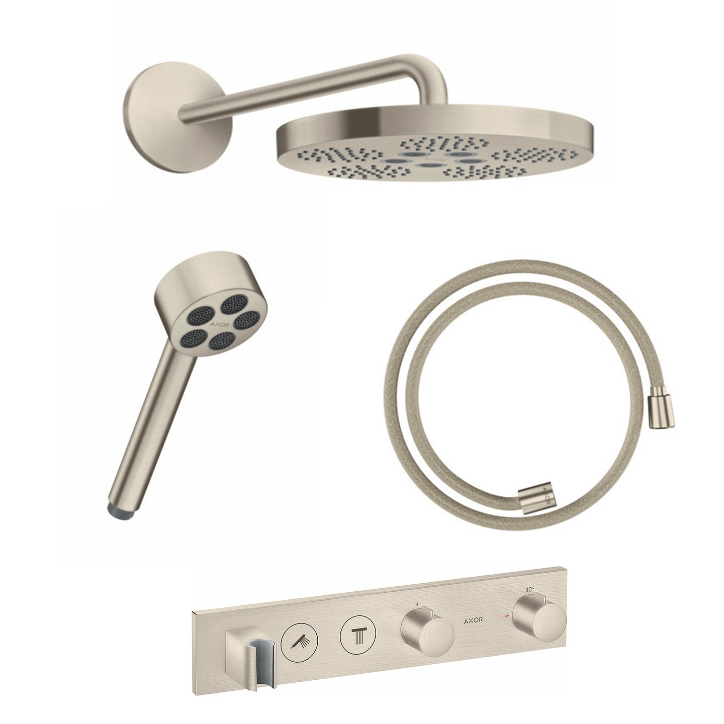 AXOR One PowderRain piiloasennettava sadesuihkusetti 1 suihkumuotoa harjattu nikkeli