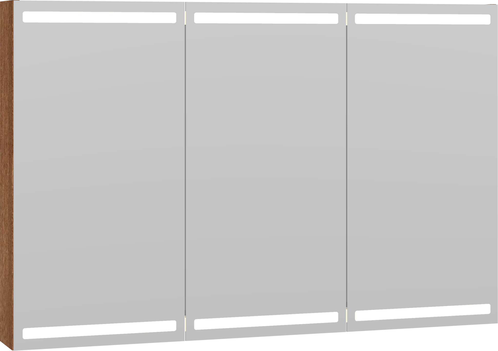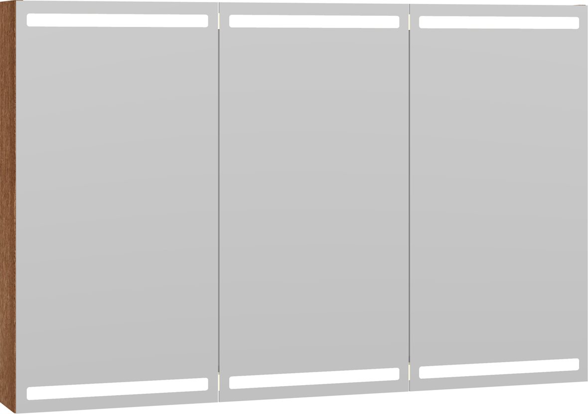 Dansani Calidris Parallel valaisinpeilikaappi 120x80x15 cm punaruskea tammi 3 ovea ilman vetimiä päävalaistus valaistuksenohjaus pistorasia oikealla