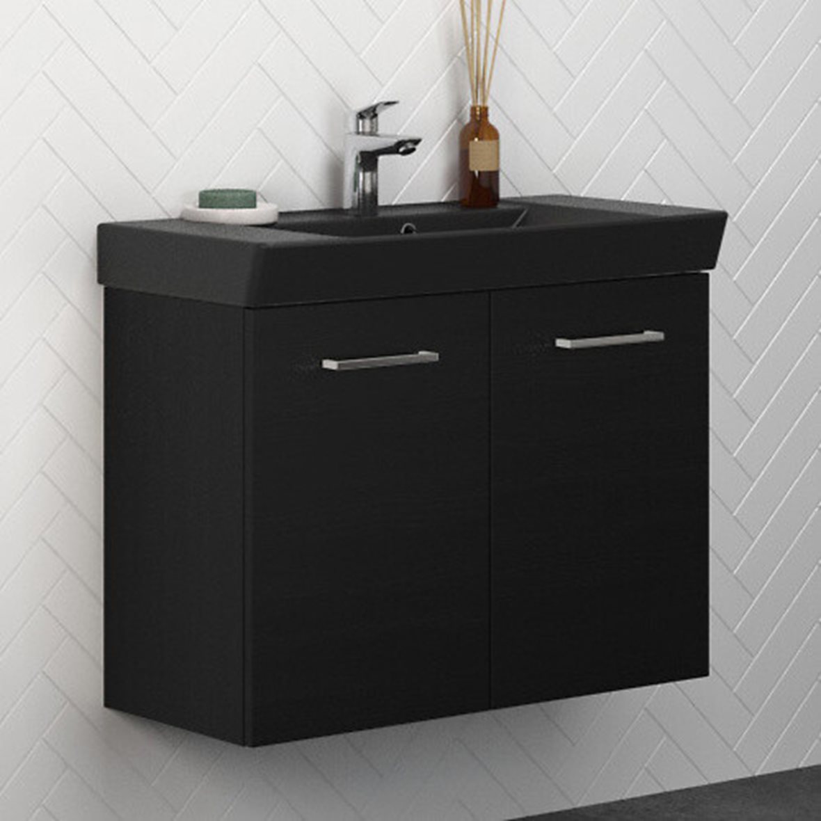 Dansani Mido kalustesetti Cappella 82x66,4x40,5 cm matta-antrasiitti+musta kuvio 2 ovea sisältää vetimet lyhyt