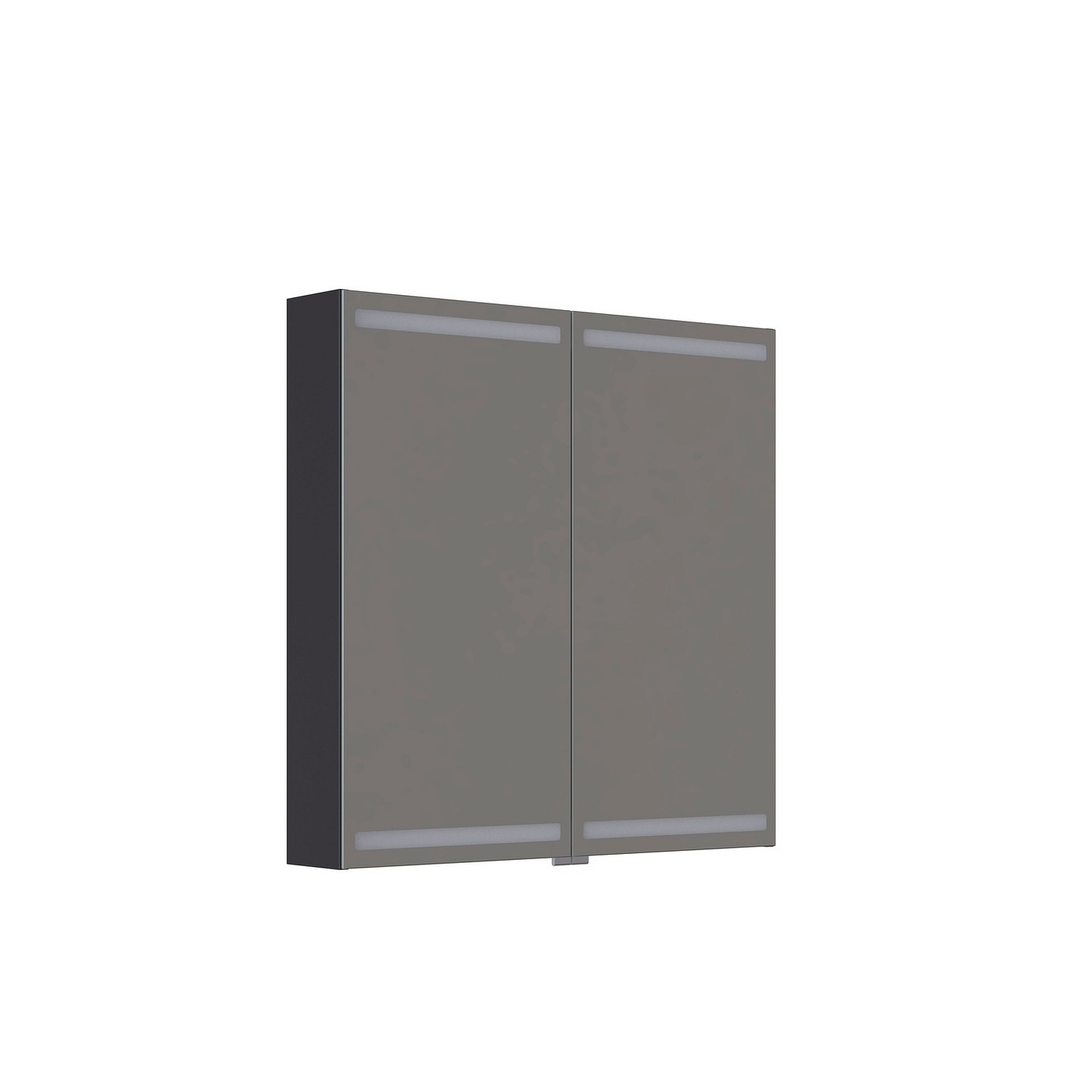 Dansani Luna Level peilikaappi 80x80x14,5 cm mattamusta kumilakka 2 ovea päävalaistus valaistuksenohjaus pistorasia oikealla