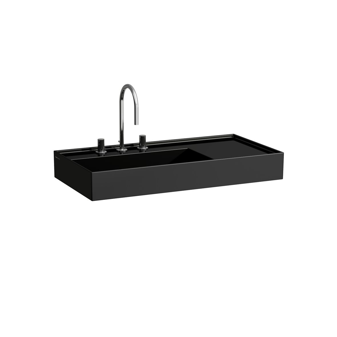 Laufen Kartell seinään asennettava pesuallas 90X46X12 cm kiiltävä musta posliini hanareikä ilman ylivuotoaukkoa kulho vasemmalla