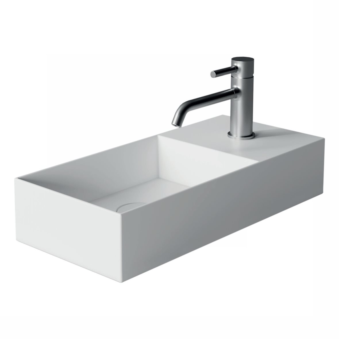 Alice Ceramica SPY seinään tai tason päälle asennettava pesuallas 55X25X11 cm kiiltävä valkoinen posliini hanareikä oikealla ilman ylivuotoaukkoa kulho vasemmalla