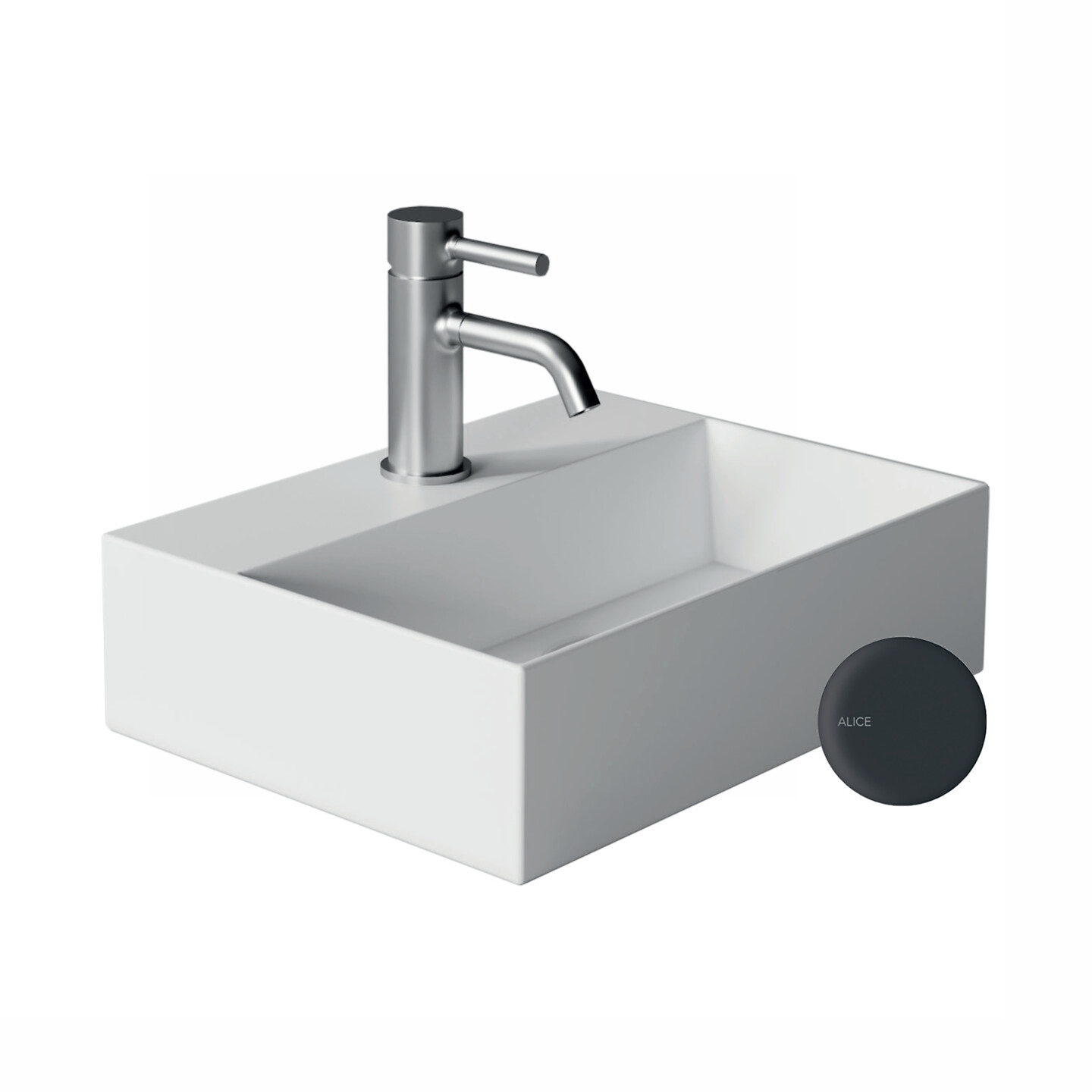 Alice Ceramica SPY seinään tai tason päälle asennettava pesuallas 40x30x11 cm mattamusta posliini hanareikä ilman ylivuotoaukkoa