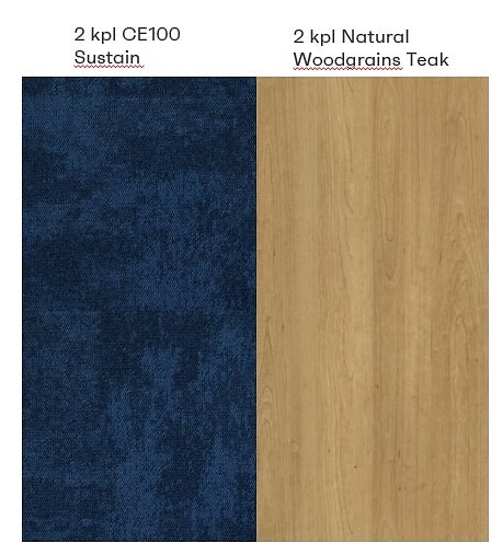 Connected Ethos -tekstiililaattojen kuosi tuo mieleen kallioiset rannat ja ruohikkoiset rinteet. Väripalettiin kuuluu maadoittavia neutraaleja sekä näyttäviä voimakkaita luonnonläheisiä värejä. Erilaiset polut ja vaikkapa toimiston alueet voit suunnitella eri väreillä. Siirtymät väristä toiseen toteutat sujuvasti värinvaihtoon suunnitelluilla saman sarjan tekstiililaatoilla. Connected Ethos -tekstiililaattojen lanka on 100 % kierrätettyä polyamidia ja CQuest™Bio -biokomposiittipohja sisältää biopohjaista ja kierrätettyä materiaalia. Kestävät ja akustoivat tekstiililaatat voidaan asentaa TacTiles®-tarroilla helposti ja nopeasti täysin ilman liimaa.
