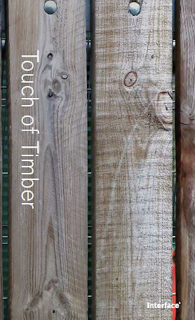 Interfacen Touch of Timber -tekstiililankkujen epäsäännöllinen puun kaarnaa muistuttava kuosi tuo luonnon sisätiloihin. Mikrotuftattu tiivis nukka yhdistää pehmeän tekstiililattian ja kovan lattian parhaat puolet. Runsas määrä kierrätettyjä raaka-aineita sekä CQuest™Bio-biokomposiittipohja mahdollistavat pienen valmistuksesta aiheutuvan hiilijalanjäljen. Kestävät ja akustoivat tekstiililankut voidaan asentaa TacTiles®-tarroilla helposti ja nopeasti täysin ilman liimaa.