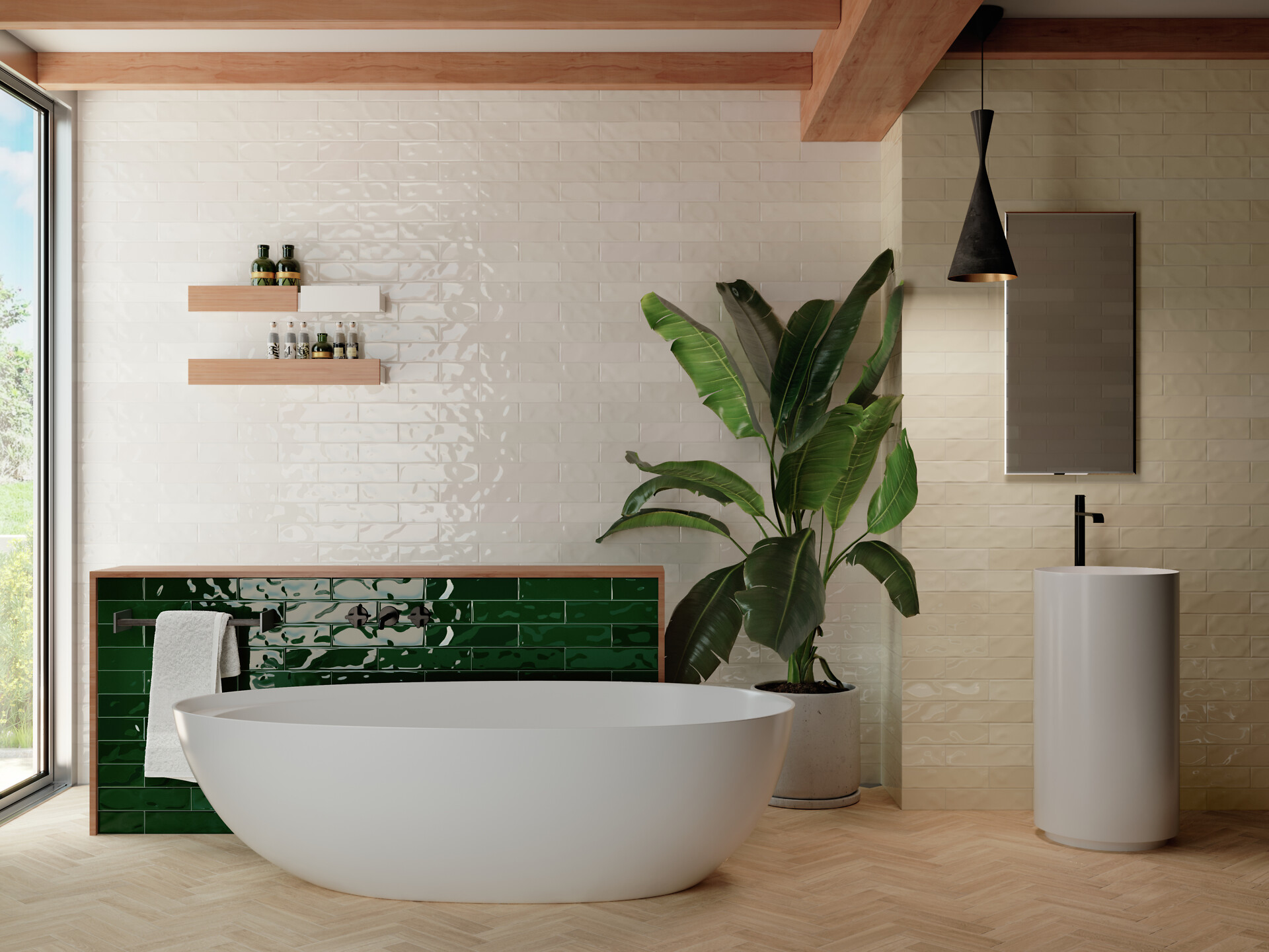 LPC Cool lasitettu kaakeli laatta 7,5X30 09 basilika laineileva kiiltävä