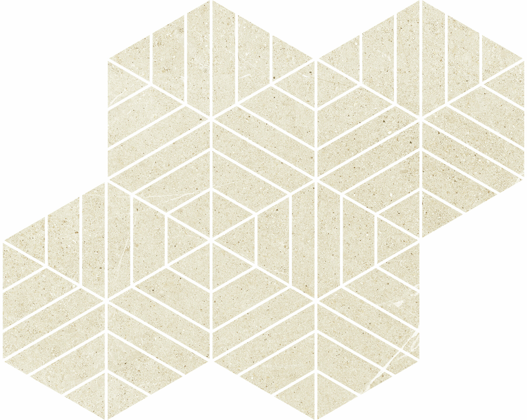 Pukkila Ease lasittamaton porcelanato mosaiikki 27,8X34,8 Esagona T72 Sand tasapintainen matta 6-kulmainen rektifioitu lasikuituverkolla 27,8X34,8