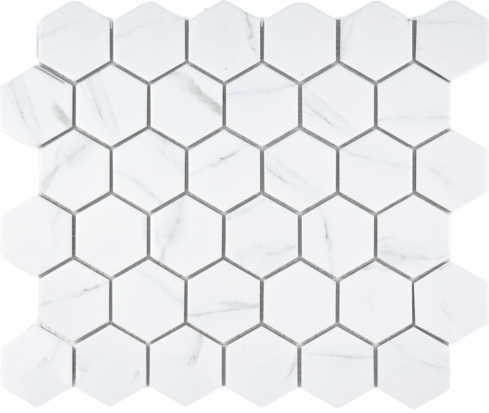 Pukkila Marmorimosaiikit lasitettu porcelanato mosaiikki 5X6 Carrara Hexagon tasapintainen matta 6-kulmainen kaliberiluokiteltu lasikuituverkolla 28,1X32,5