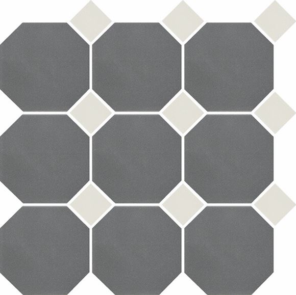 Pukkila Natura lasittamaton porcelanato laatta 9,6X9,6 grafiitinharmaa/valkoinen 4430OCT16/1C tasapintainen matta 8-kulmainen lasikuituverkolla 29,6X29,6