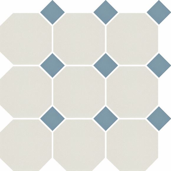 Pukkila Natura lasittamaton porcelanato laatta 9,6X9,6 valkoinen/sininen 4416OCT11/1C tasapintainen matta 8-kulmainen lasikuituverkolla 29,6X29,6