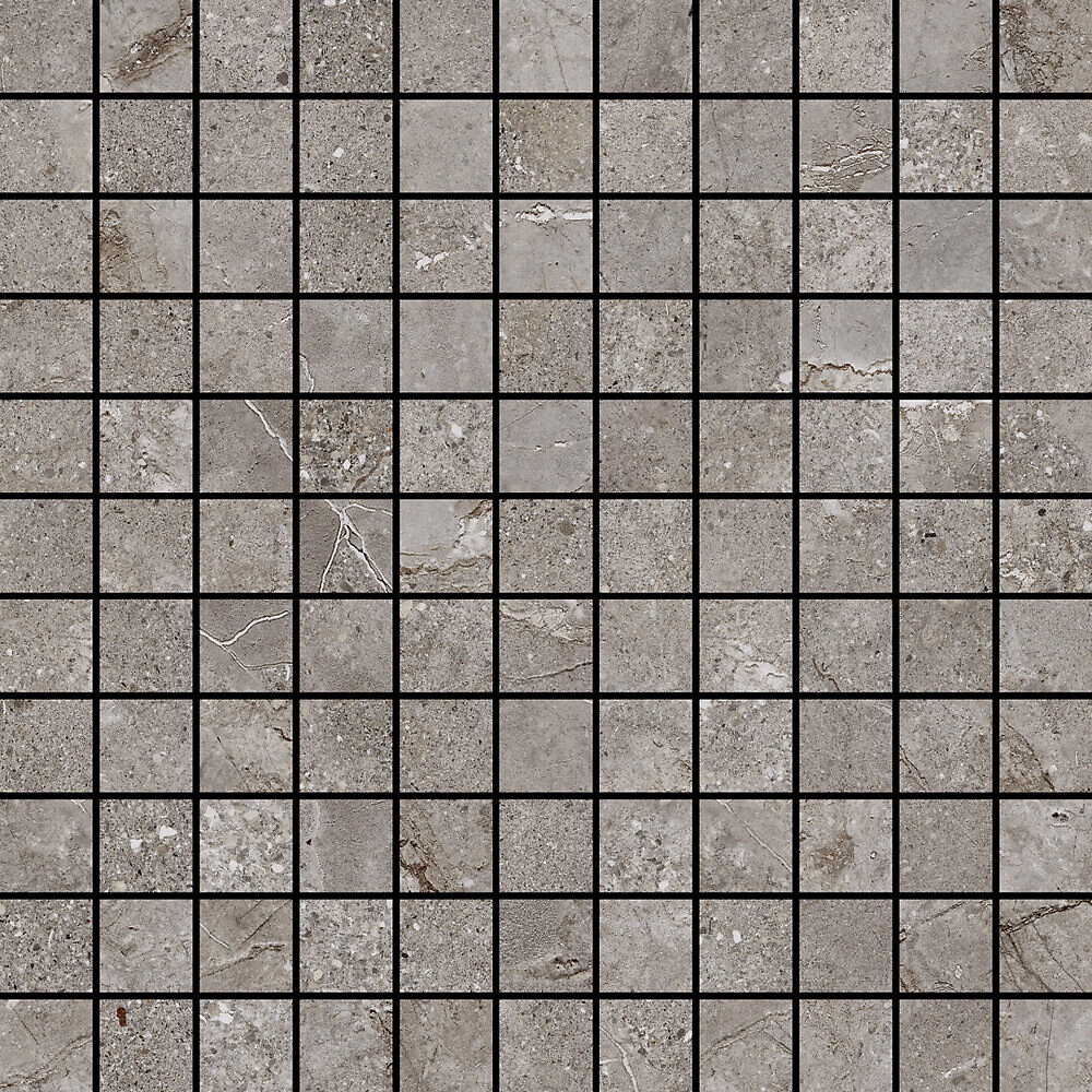 Pukkila Stone Age lasitettu kaakeli mosaiikki 2,5X2,5 Grey tasapintainen matta lasikuituverkolla 29,5X29,5
