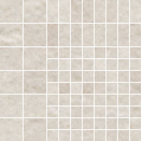 Pukkila Downtown DT lasittamaton porcelanato mosaiikki 30X30 01 Kalkki Mosaic Mix tasapintainen matta rektifioitu lasikuituverkolla 29,8X29,8