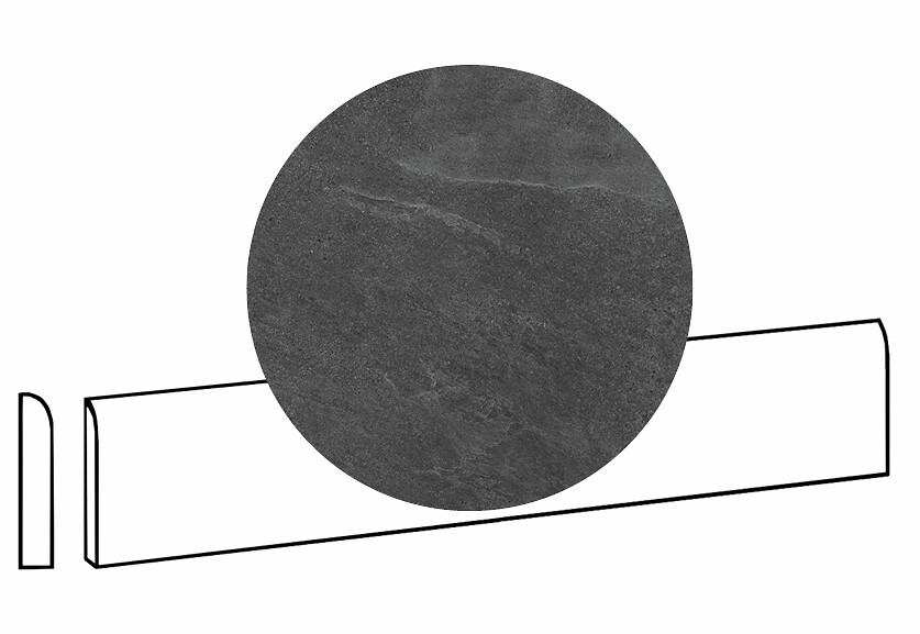 LPC Alaska lasittamaton porcelanato jalkalista pyöristetty pitkä sivu 7,2X60 08 antrasiitti laineileva matta rektifioitu