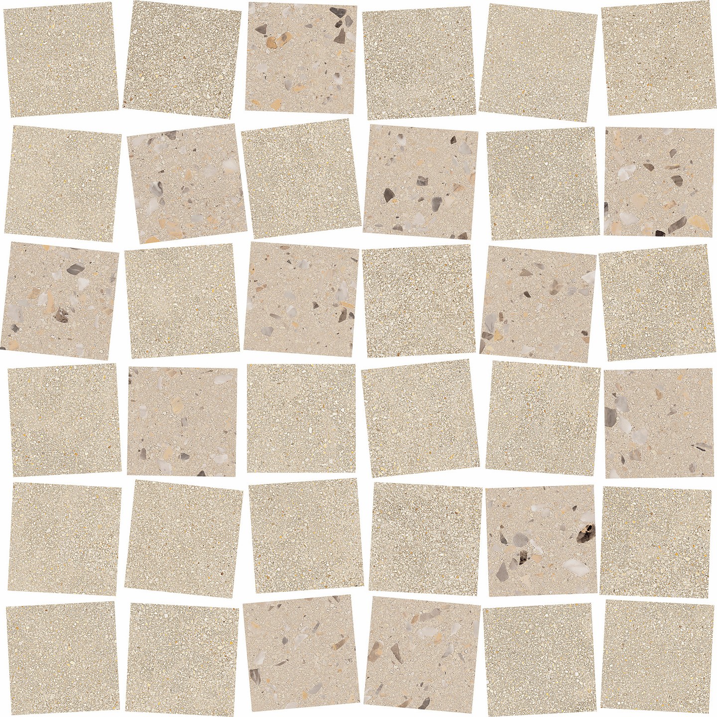 LPC Cemento Re60 Cobble Mix lasittamaton porcelanato mosaiikki 4,8X4,8 02 Sand tasapintainen silotettu matta lasikuituverkolla 30X30