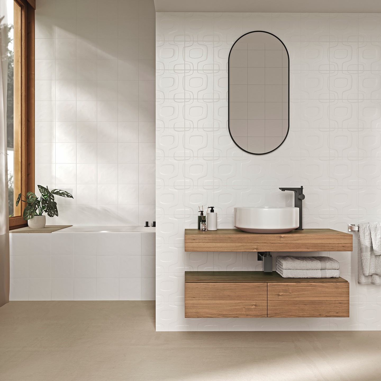 LPC Groovy lasitettu kaakeli laatta 20X20 06 White kohokuvioinen matta