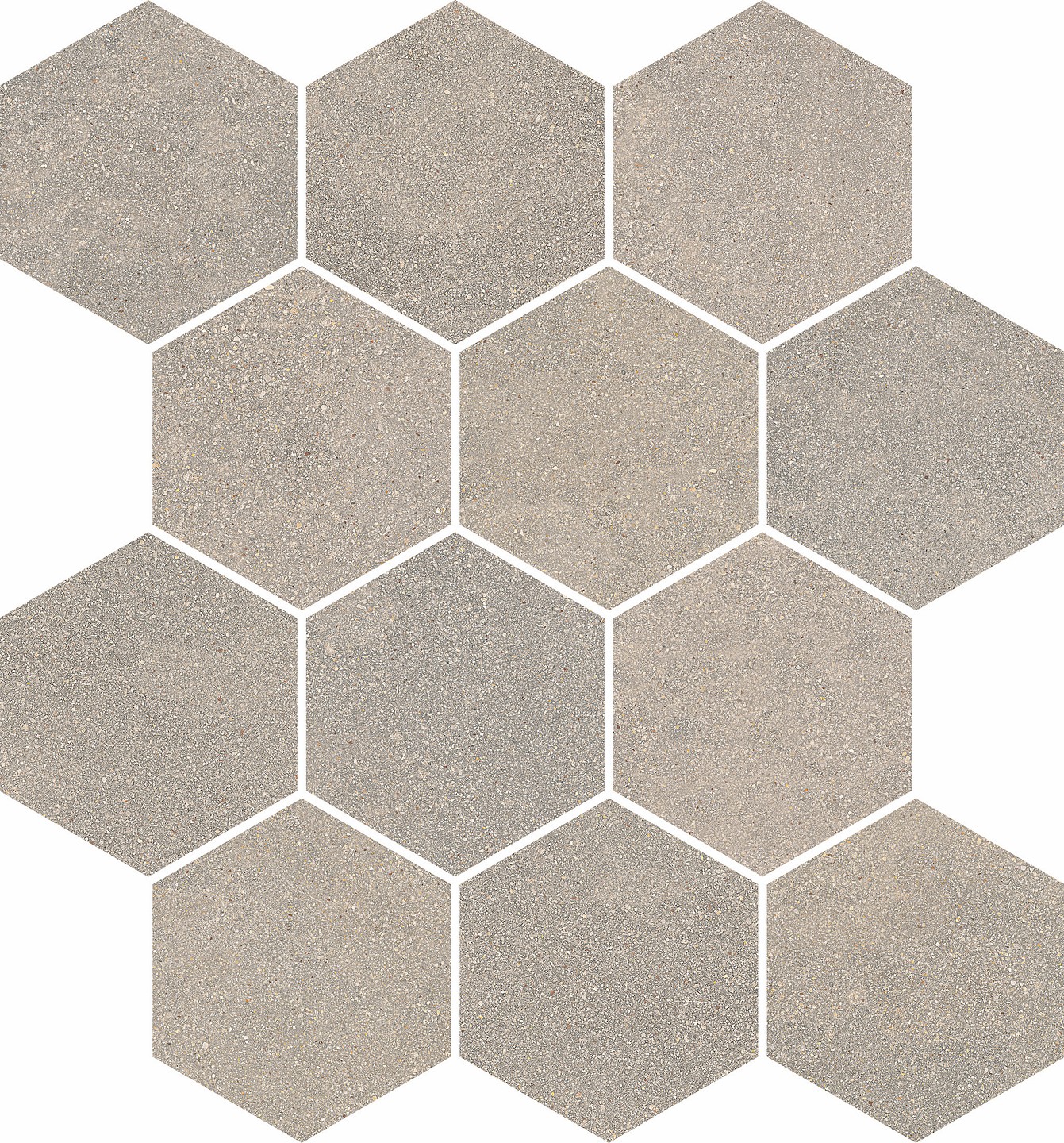 LPC Cemento Re60 Hexagon lasittamaton porcelanato mosaiikki 03 Greige tasapintainen silotettu matta 6-kulmainen lasikuituverkolla 29,8X34,4
