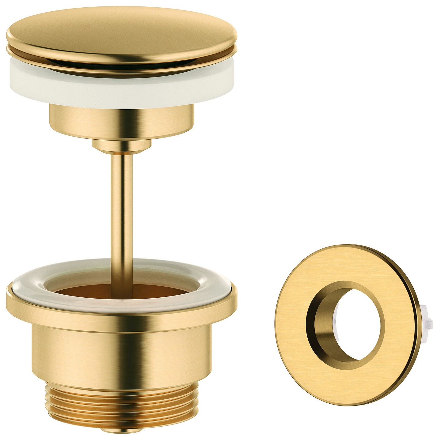 Damixa push-open pohjaventtiili ja ylivuotorengas PVD harjattu messinki