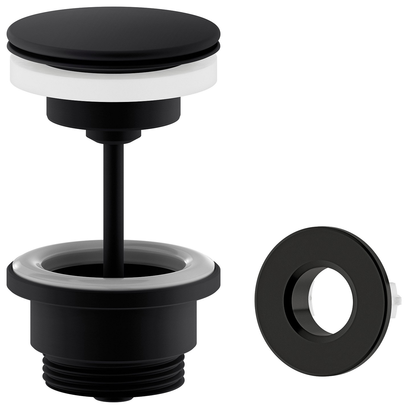 Damixa push-open pohjaventtiili ja ylivuotorengas mattamusta